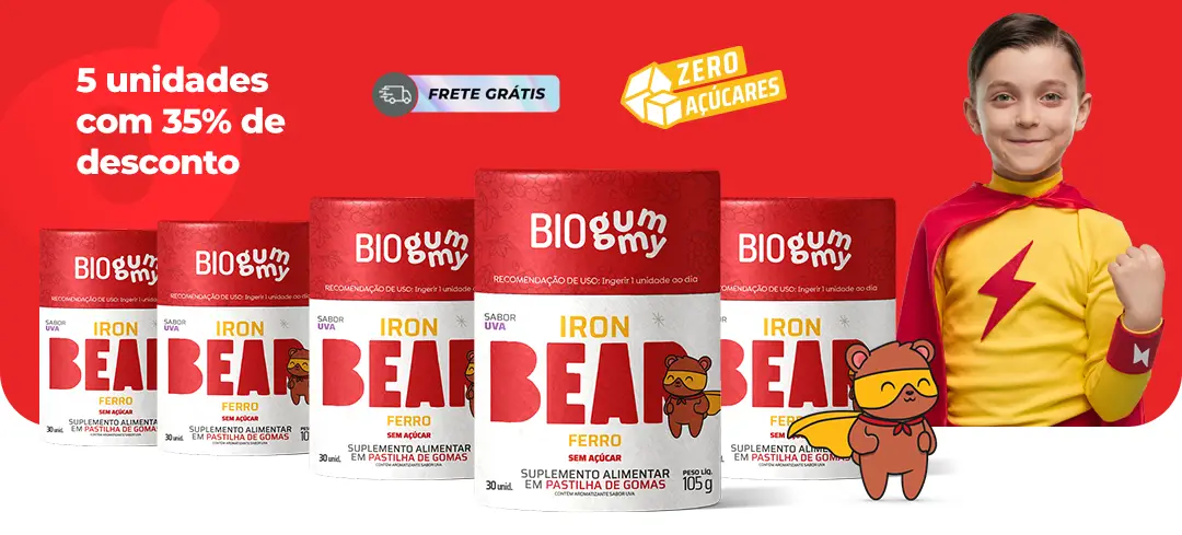 Aproveite o Combo Iron Bear: 5 unidades com 35% de desconto para garantir que seus filhos tenham energia, saúde e o suporte necessário para crescerem com mais disposição e vitalidade.