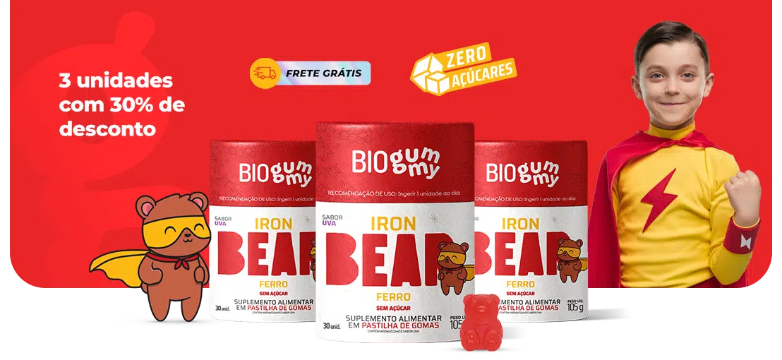Aproveite o Combo Iron Bear: 3 unidades com 30% de desconto para garantir que seus filhos tenham energia, saúde e o suporte necessário para crescerem com mais disposição e vitalidade.