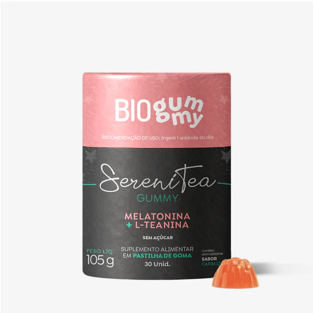 Descubra o novo SereniTea Gummy, uma fórmula desenvolvida para promover noites tranquilas e um relaxamento completo. Com melatonina potencializada, L-teanina e vitamina B6, ele auxilia no equilíbrio do sistema nervoso e na qualidade do sono, sem causar sonolência diurna.