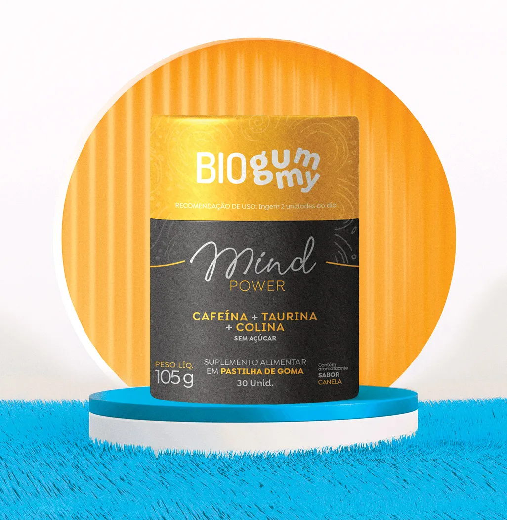 Suplemento alimentar em gomas que auxilia no desempenho cognitivo, foco e concentração.
