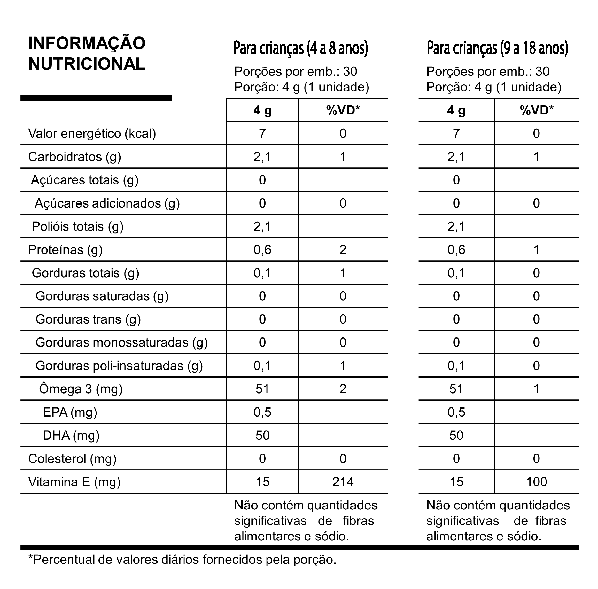 Este produto não é um medicamento. Não exceder a recomendação diária de consumo indicada na embalagem. Mantenha fora do alcance de crianças. Produto indicado para crianças acima de 4 anos.